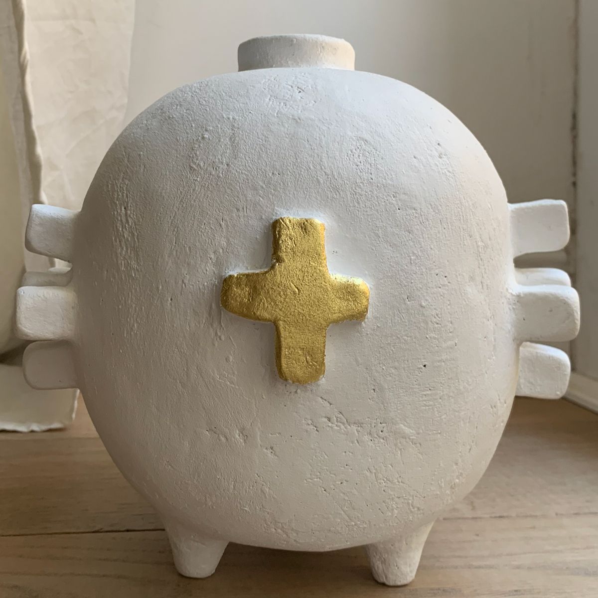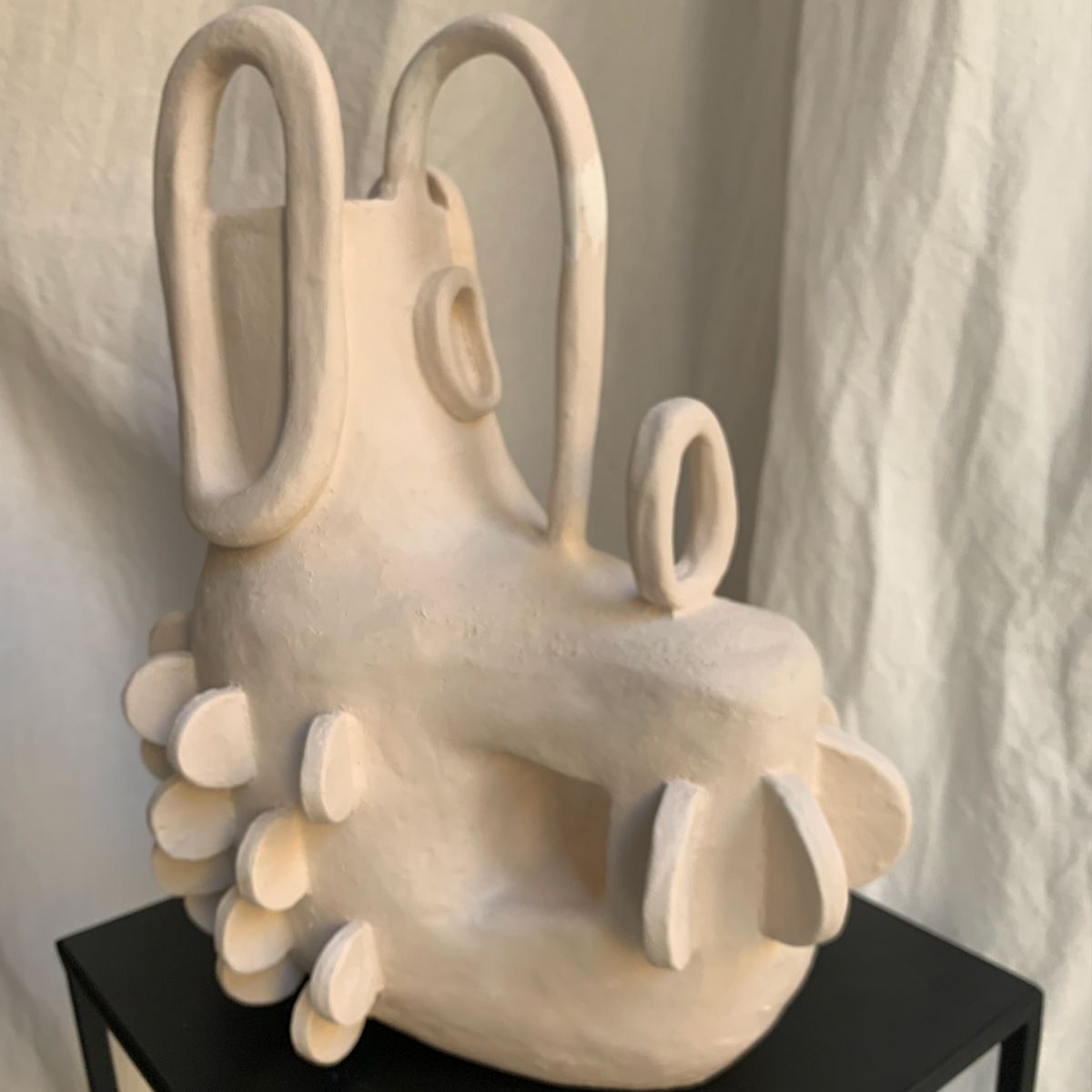 La céramique est devenue une extension naturelle de son art. un moyen de donner vie à ses visions dans un espace tridimensionnel.